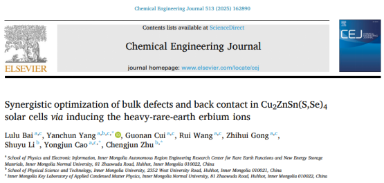 Cu2ZnSn(S,Se)4薄膜太阳电池因其富稀土、制备成本低、环境友好等优点而备受关注。在过去的几年里,取得了巨大的突破。然而,与CdTe和Cu(In,Ga)Se2的薄膜太阳电池相比,Cu2ZnSn(S,Se)4器件的最高效率仍然较低,需要进一步提高。不合理的开路电压(VOC)缺陷被认为是器件性能的主要限制因素,这既来自于较差的背界面接触,也来自于太多不需要的体缺陷。这些缺陷很可能成为光生载流子的主要复合中心,对器件的性能有负面影响。为了缓解这些缺陷,研究人员开发了多种阳离子掺杂措施,目前取得了显著进展。