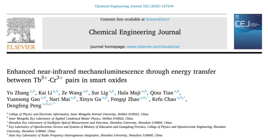 近红外(NIR)力致发光材料因其在生物医学成像、食品分析和夜视领域的潜在应用而备受关注。本研究采用传统高温固相法成功合成了Tb₃Al₅O₁₂:Cr³⁺(TAG:Cr³⁺)荧光粉。通过Tb³⁺与Cr³⁺之间的能量转移(ET),材料实现了近红外发光的显著增强。系统研究了TAG:Cr³⁺荧光粉的结构和发光特性,发现Tb³⁺的发射光谱与Cr³⁺的吸收光谱存在强重叠,从而促进了高效的能量转移。当嵌入聚二甲基硅氧烷(PDMS)复合材料时,荧光粉表现出优异的力致发光(ML)特性,在重复机械刺激下展现出强劲的响应性和可恢复性。密度泛函理论(DFT)计算进一步从原子尺度阐明了发光机制,揭示了TAG:Cr³⁺荧光粉与PDMS基质之间的电荷转移相互作用。制备的近红外pc-LED在组织成像、食品损伤检测和夜视等应用中表现出色。同时,近红外力致发光薄膜在活体生物应力成像中展现出广阔的应用前景。这些发现为开发高性能、多模态近红外发光材料提供了新思路,拓展了其在多样化应用中的潜力。